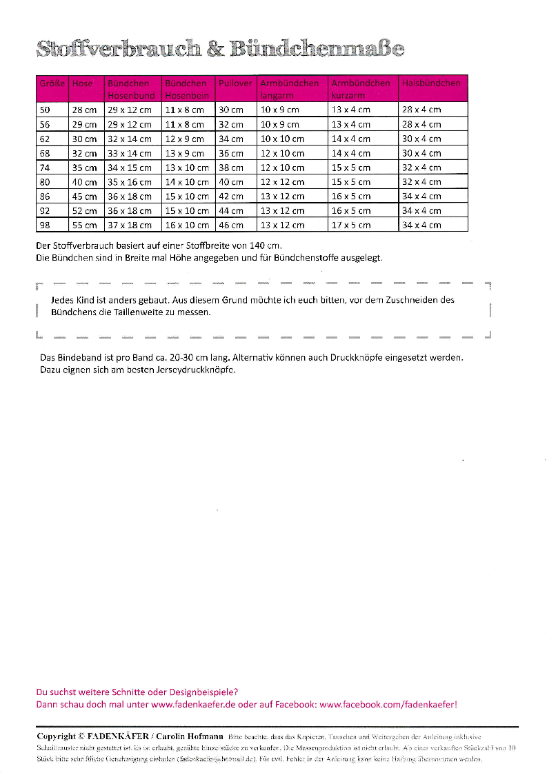 Das Schnittmuster beinhaltet alle Nahtzugaben.